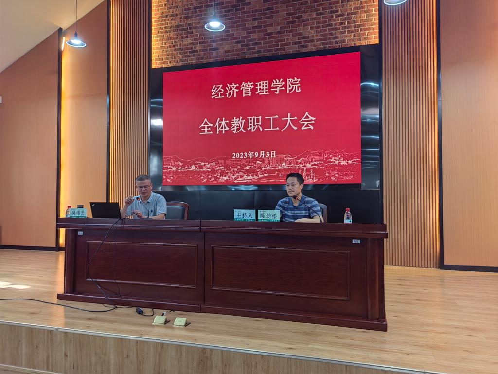 学院召开全体教职工大会 9月3日下午,学院在衣锦农林大讲堂召开新学期全体教职工大会。学院领导班子成员及全体教职工参加会议。大会由党委书记陈劲松主持。院长吴伟光通报了学院工作进展,并对下半年的重点工作进行了部署。他指出,beat365官方网站要把握自身所处的方位,找准努力的方向,充分发挥学院在农林大学人文社科学院中的引领作用,以构建高水平人才培养体系为导向,认真贯彻落实学校的工作部署,发挥学院的学科特色优势,扎实推进学院人才引培、组织...