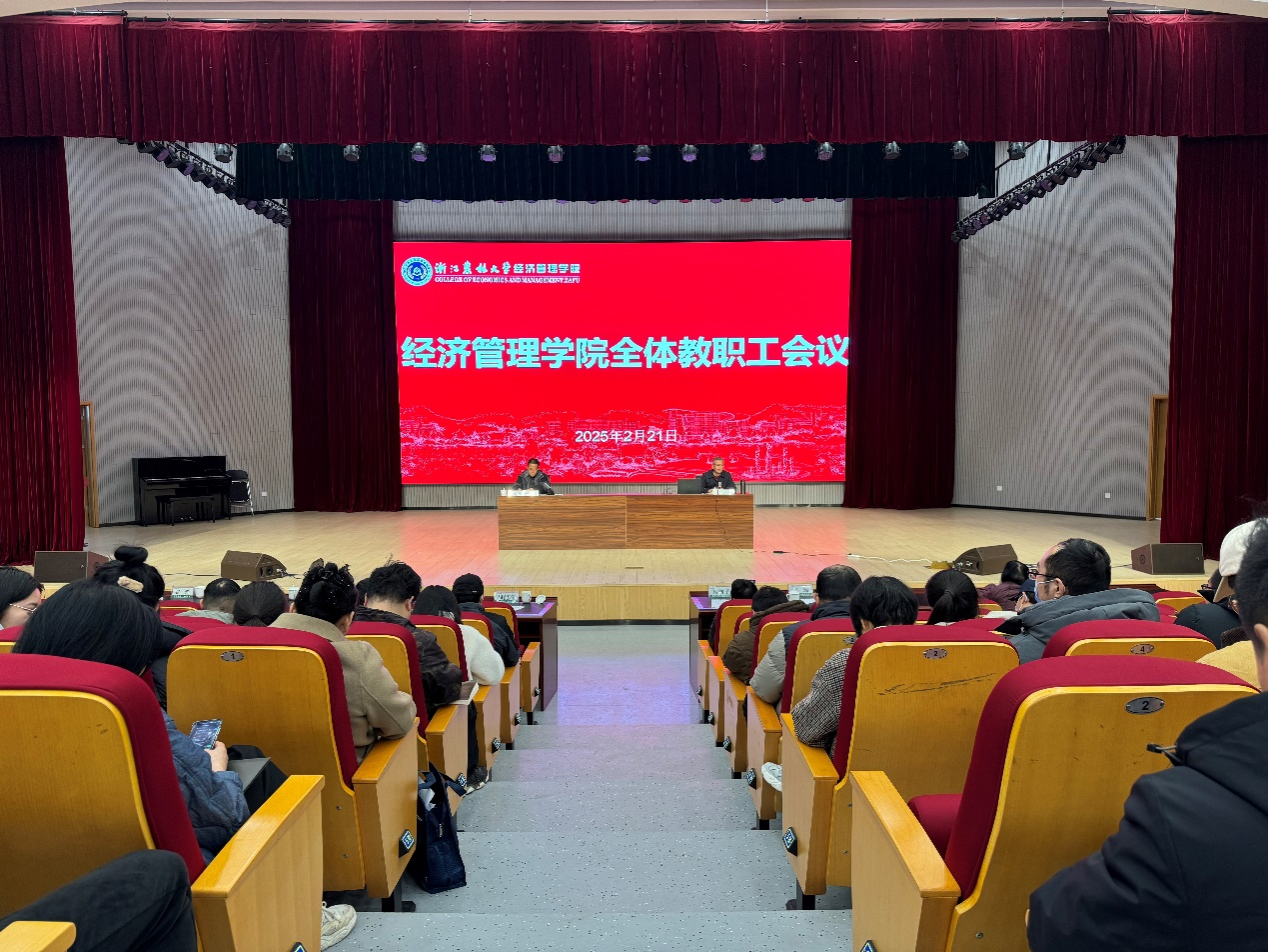 农林经济管理学科召开2024年学科总结会 2025年1月12日下午,beat365官方网站农林经济管理学科2024年度工作总结会顺利举行。学院全体领导班子成员、浙江省乡村振兴研究院院长沈月琴教授、浙江省乡村振兴研究院首席专家张俊飚教授、兄弟学科负责人与全体学科老师参加会议。会议由学院副院长朱臻教授主持。吴伟光院长对2024年农经学科所取得的成就表示了肯定,也对学科老师一年的辛勤付出表示感谢。吴院长指出农经学科是学院的龙头学科,近年来取得了一系列标志性成绩,在第...