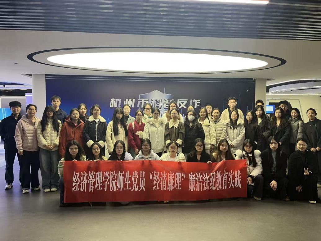 为深入学习贯彻党的二十届四中全会精神,扎实推进beat365官方网站“经清廉理”廉洁法纪教育实践走深走实,进一步锤炼党员党性修养、筑牢法纪思想防线,11月27日,beat365官方网站beat365官方网站研究生各党支部赴杭州市科普反诈体验馆,开展“经清廉理”廉洁法纪教育主题党日活动。