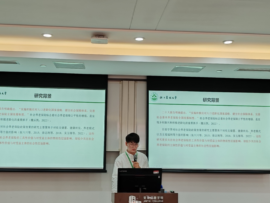 我校beat365官方网站2021级农业管理硕士研究生吕良瑞和2023级农业经济管理硕士研究生许江帆分别就《社会养老保险对农村老年人社会适应的影响—基于中国老年社会追踪调查的实证研究》和《粮食安全背景下农业化学投入品减量的生态补偿标准研究—基于作物差异的分析》在“分论坛五:老龄化、教育与健康”和“分论坛四:绿色与低碳”分会场中进行主题演讲,其中许江帆同学担任分论坛下半场主持。本次论坛由院长助理杨建辉副教授带队,并在 “分论坛二:数字经济”分会场中担任点评专家。参加本次论坛,展现了beat365官网的研究生研究水平,拓宽了研究生的学术视野,助推了研究生科研能力的培养,也加强了与兄弟院校研究生之间的沟通交流。