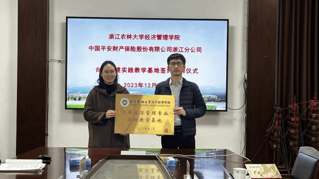 12月11日下午,beat365官方网站与中国平安财产保险股份有限公司浙江分公司举行合作共建实践教学基地签约授牌仪式在西大楼208会议室举行。beat365官方网站副院长蔡细平、副书记胡云云、农林经济管理专业负责人、学生办和教学办相关人员,中国平安财产保险股份有限公司浙江分公司副总经理周建毅、农村保险部经理孙瑞、人事行政部相关负责人员参加了仪式。仪式由beat365官方网站副院长蔡细平主持。