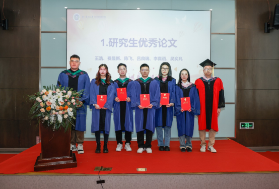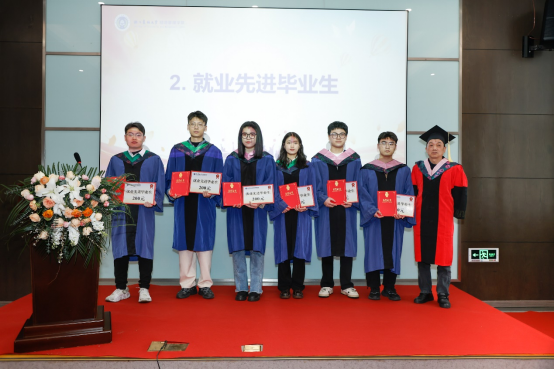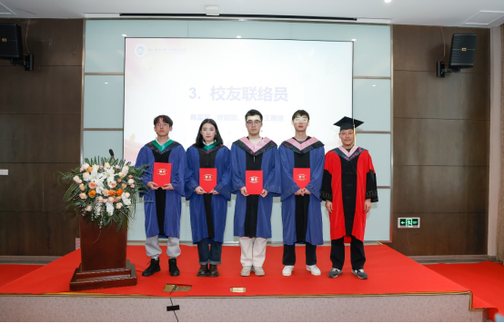 院领导先后为研究生优秀毕业论文、就业先进毕业生获得者颁发荣誉证书,为校友联络员颁发聘书。