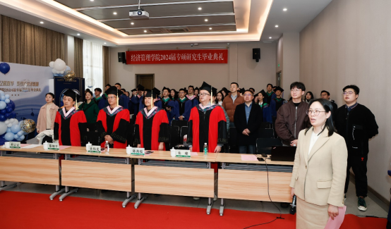 毕业典礼在雄壮的国歌声中拉开帷幕。