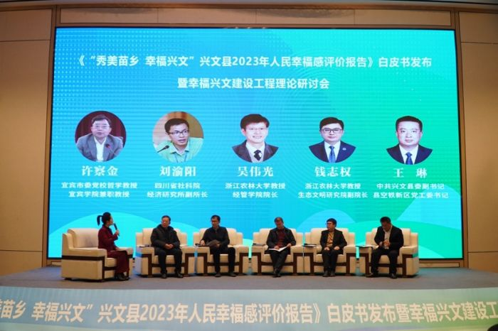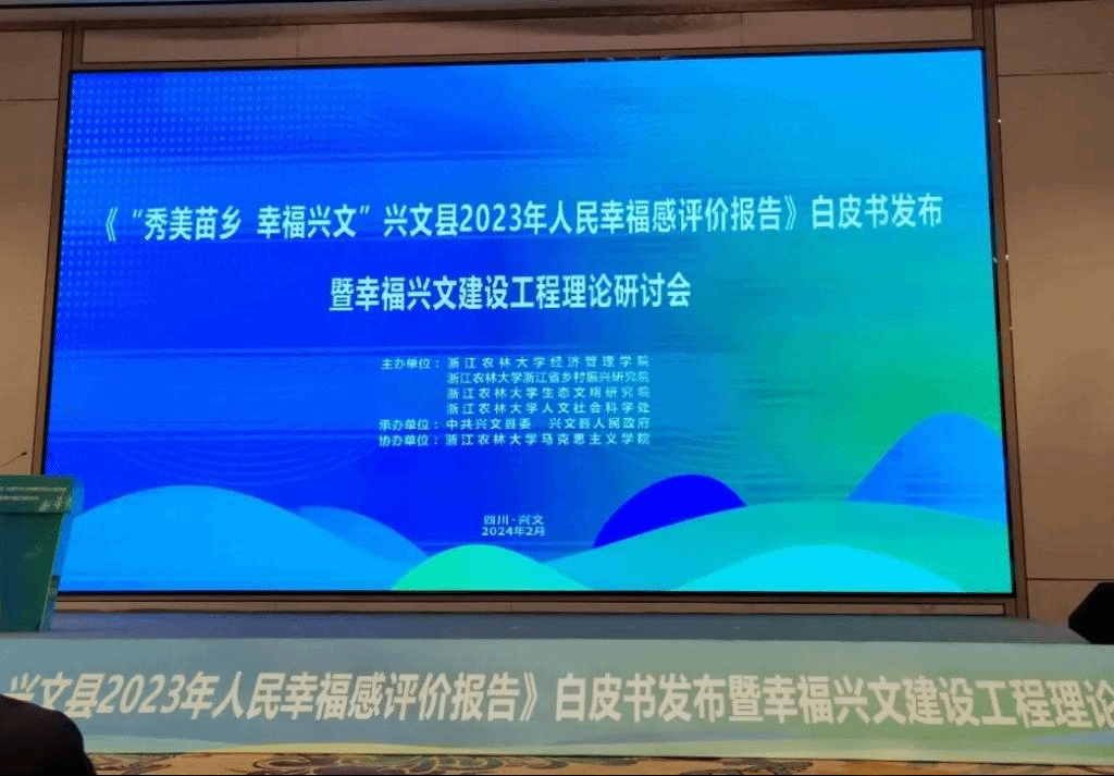 2月27日,由beat365官方网站与浙江省乡村振兴研究院、生态文明研究院、人文社会科学处主办,中共兴文县委、兴文县人民政府承办,马克思主义学院协办的《“秀美苗乡 幸福兴文”兴文县2023年人民幸福感评价报告》白皮书发布暨幸福兴文建设工程理论研讨会在四川省宜宾市兴文县举行。