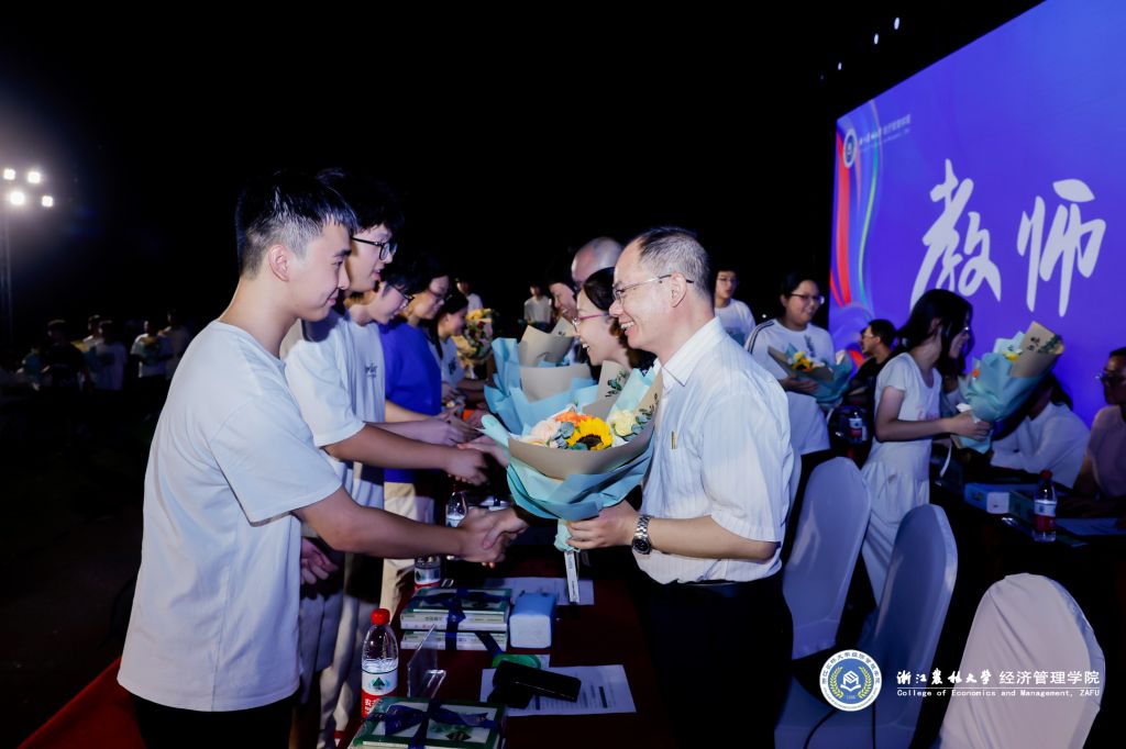 时值教师节来临之际,新生代表们为现场老师们赠送献花,老师们也为新生赠送“新生礼”,祝愿全体新“经管人”带着学院的美好祝愿,扬帆起航。