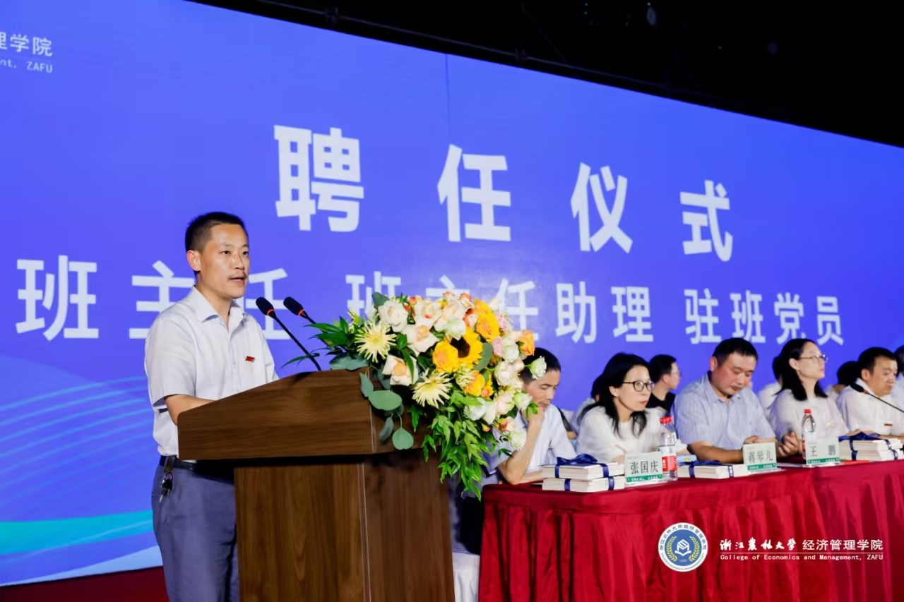 学院党委书记陈劲松宣读班主任、班主任助理、驻班党员文件,强调通过师生1+1+N行动,全方位助力新生成长。主席台领导老师为受聘师生颁发证书。