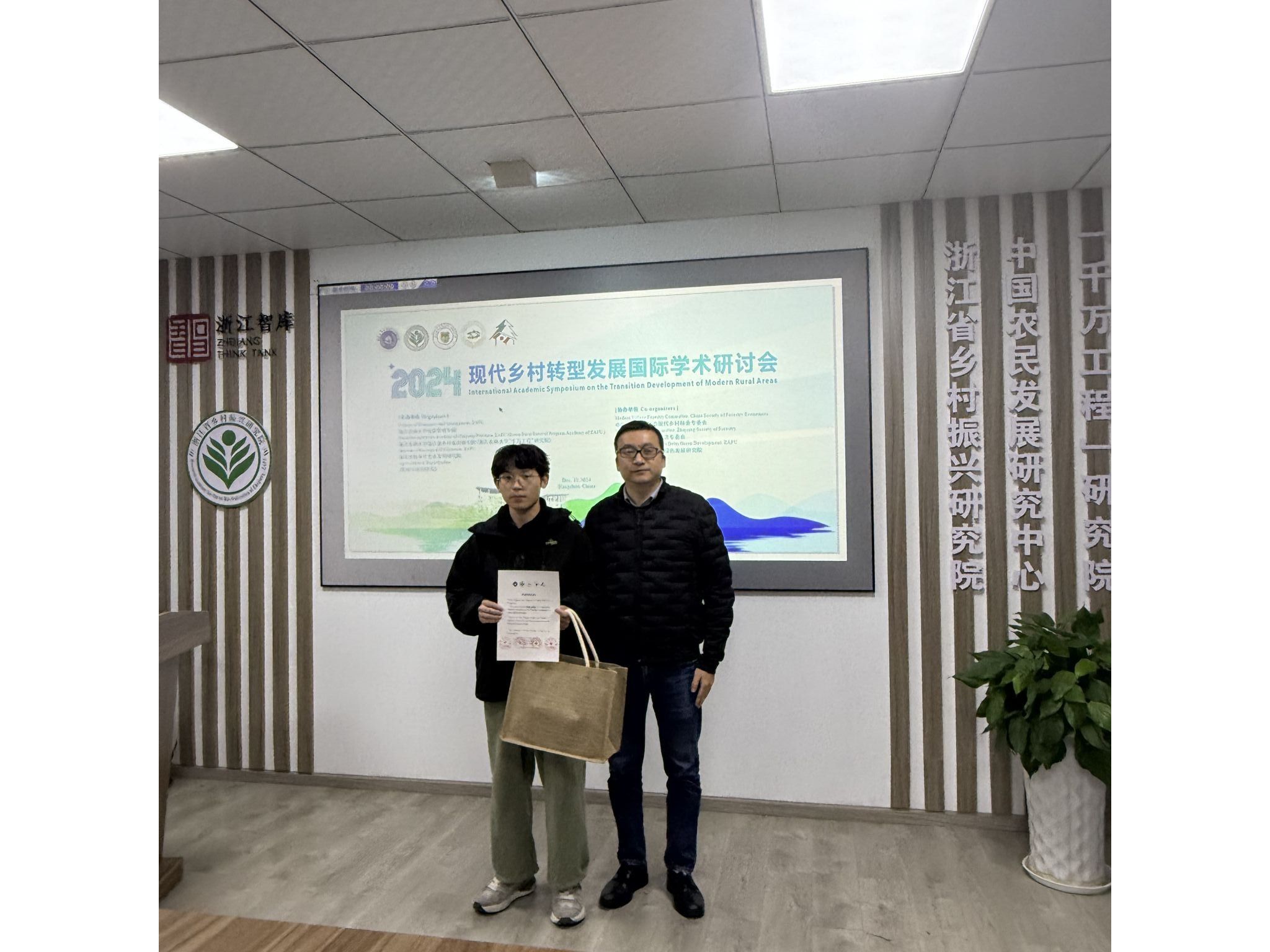 青年学者论坛中,共有20位研究生就自己的科研成果进行了英文汇报交流。最后,大会共评出9篇优秀论文。其中研究生丁永鹏同学的论文《Can Both “Business friendly” and “livability” Be Achieved: A Study on the Pilot Policy of Return-to-Hometown Entrepreneurship on Air Quality》被评为一等奖;程相波同学的论文《 The Impact of Whole-Region Comprehensive Land Consolidation on Carbon Balance and Its Configuration Paths at the Township Level: from the perspective of supply and demand of carbon sequestration services》、蔡沁颖同学的论文《 The impact of ESG rating on green technology innovation in agroforestry enterprises》、陈娟娟同学的论文《The Impact of the County-to-District Transition on Rural Consumption Inequality in China》被评为二等奖;张琰同学的《 The impact of home-based elderly care services on the mental health of older people: a synergistic perspective》、陆梦婷同学的《 Access to Information, Supervision of Quality, and Internet Meal Food Safety》、过烨怡同学的《Improving nudge strategies for low-carbon consumption》、余晓凤同学的《 Direct and spillover effects of agribusiness on grain output-Evidence from China》、夏文浩同学的论文《Spatiotemporal Patterns and Convergence Analysis of Agricultural Green Total Factor Productivity: A Case Study of Xinjiang in China》被评为三等奖。