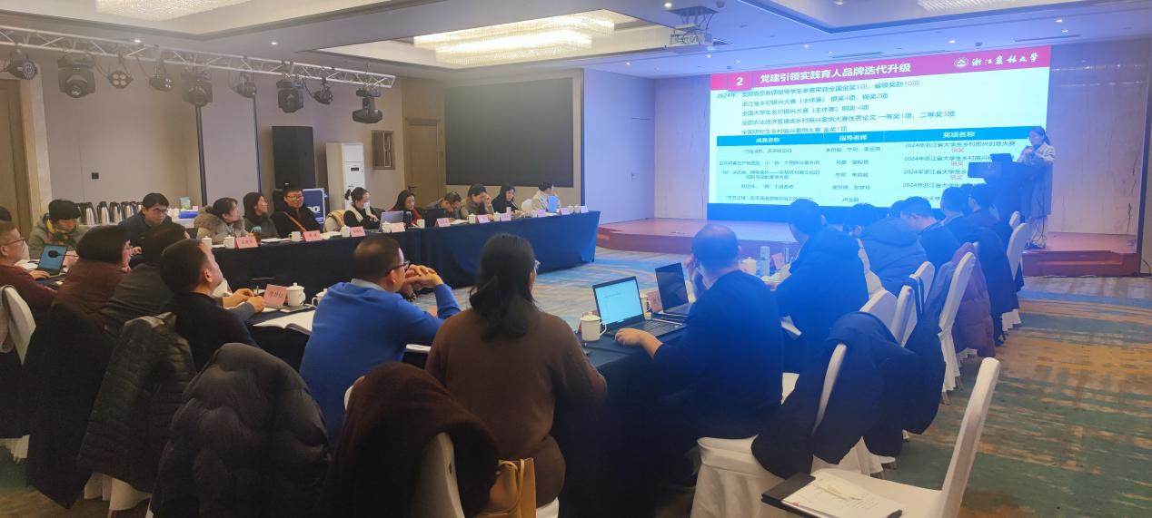 2025年1月12日下午,beat365官方网站农林经济管理学科2024年度工作总结会顺利举行。学院全体领导班子成员、浙江省乡村振兴研究院院长沈月琴教授、浙江省乡村振兴研究院首席专家张俊飚教授、兄弟学科负责人与全体学科老师参加会议。会议由学院副院长朱臻教授主持。