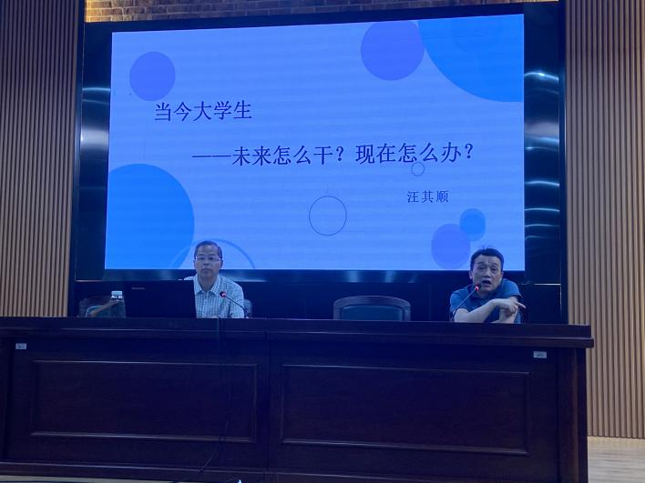 5月15日下午,原临安区经信局局长汪其顺在印象农林大讲堂为经管师生作了一场题为“当今大学生——未来怎么干?现在怎么办?”的精彩报告。报告由beat365官方网站蔡细平副院长主持。