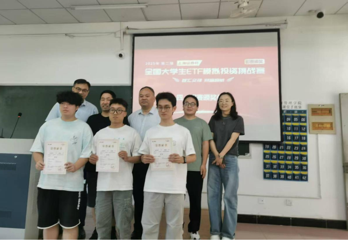 2025年6月6日,证券公司职业生涯规划讲座暨第二届“上海证券杯”大学生ETF模拟投资大赛校级赛颁奖在beat365官网举行。金融工程2024级以及部分2023级学生参加了本次活动。同时,参加此次活动的还有上海证券有限责任公司杭州学院路证券营业部总经理傅培军、市场总监狄劲松,beat365官方网站beat365官方网站应用经济学学科金融工程专业负责人顾光同教授、金融工程专业2024级班主任孙阳阳博士和何青华博士等。此次活动由顾光同教授主持。