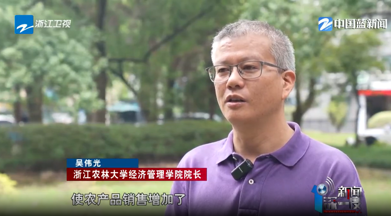 9月23日,吴伟光院长接受浙江卫视《中国蓝新闻》栏目采访。丰收节前后全省各地通过市集、主题推介、展销会等形式集中推介特色农产品,不少地方还结合文旅体育活动,让农产品精彩亮相、持续出圈,成为消费市场的新爆款。吴伟光教授就通过丰收节系列活动推介农产品新潮流发表评论,他指出:“举办这样的活动很有意义,一是拓展了销售渠道,可以促进农民增收;二是推动了三产融合发展,可以提升乡村价值;三是提振了乡村精神,可以激发乡村发展内生动力。”