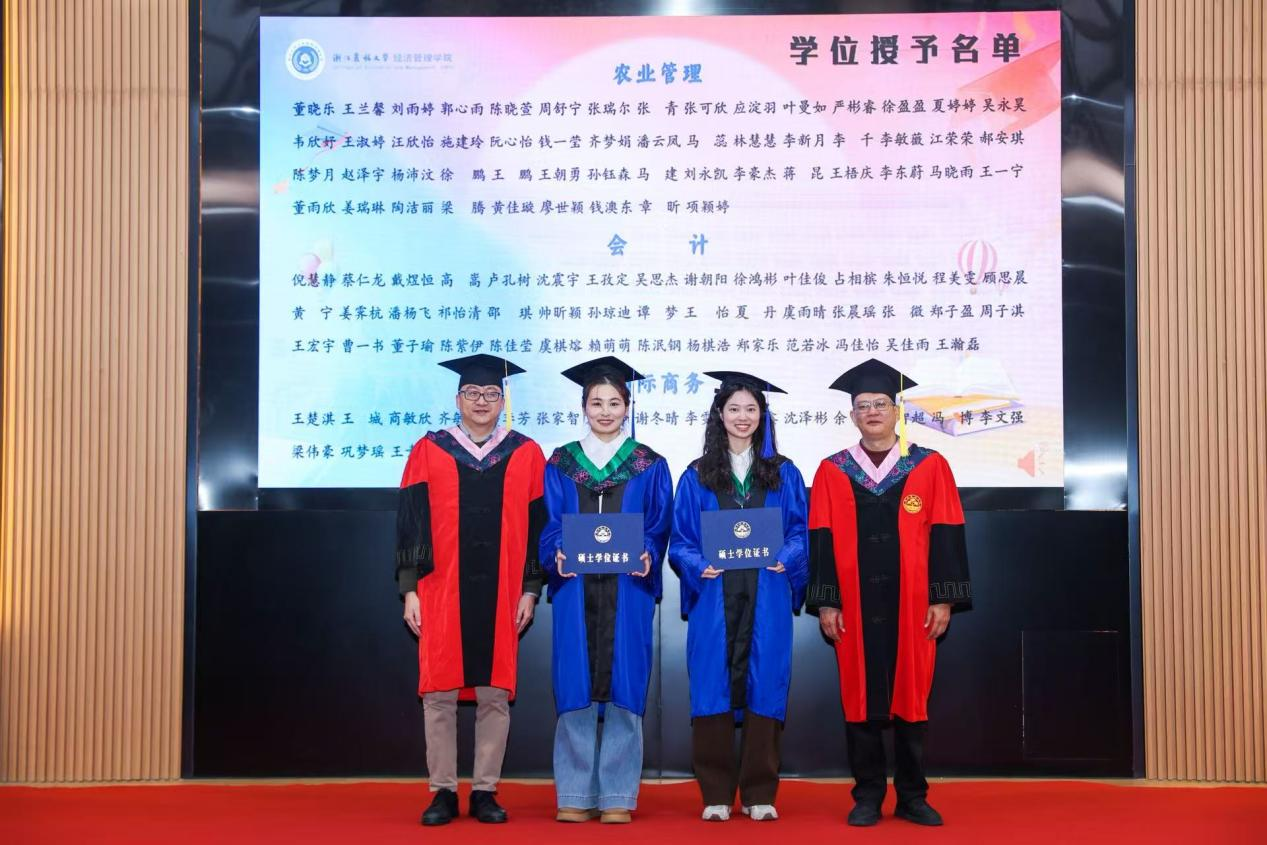 1月13日,beat365官方网站2026届冬季研究生毕业典礼暨学位授予仪式在衣锦校区农林大讲堂隆重举行。beat365官方网站院长吴伟光、党委书记陈劲松、副院长蔡细平、副院长朱臻以及研究生学位点负责人、导师代表、毕业班班主任、研究生辅导员、2026届冬季毕业生及家长代表共同参与本次活动。活动由党委副书记曹磊主持。