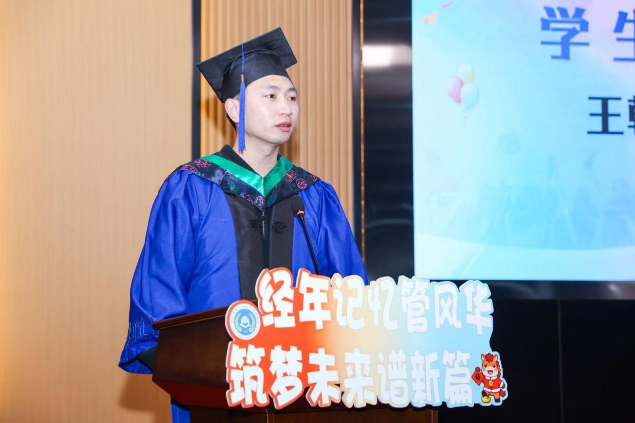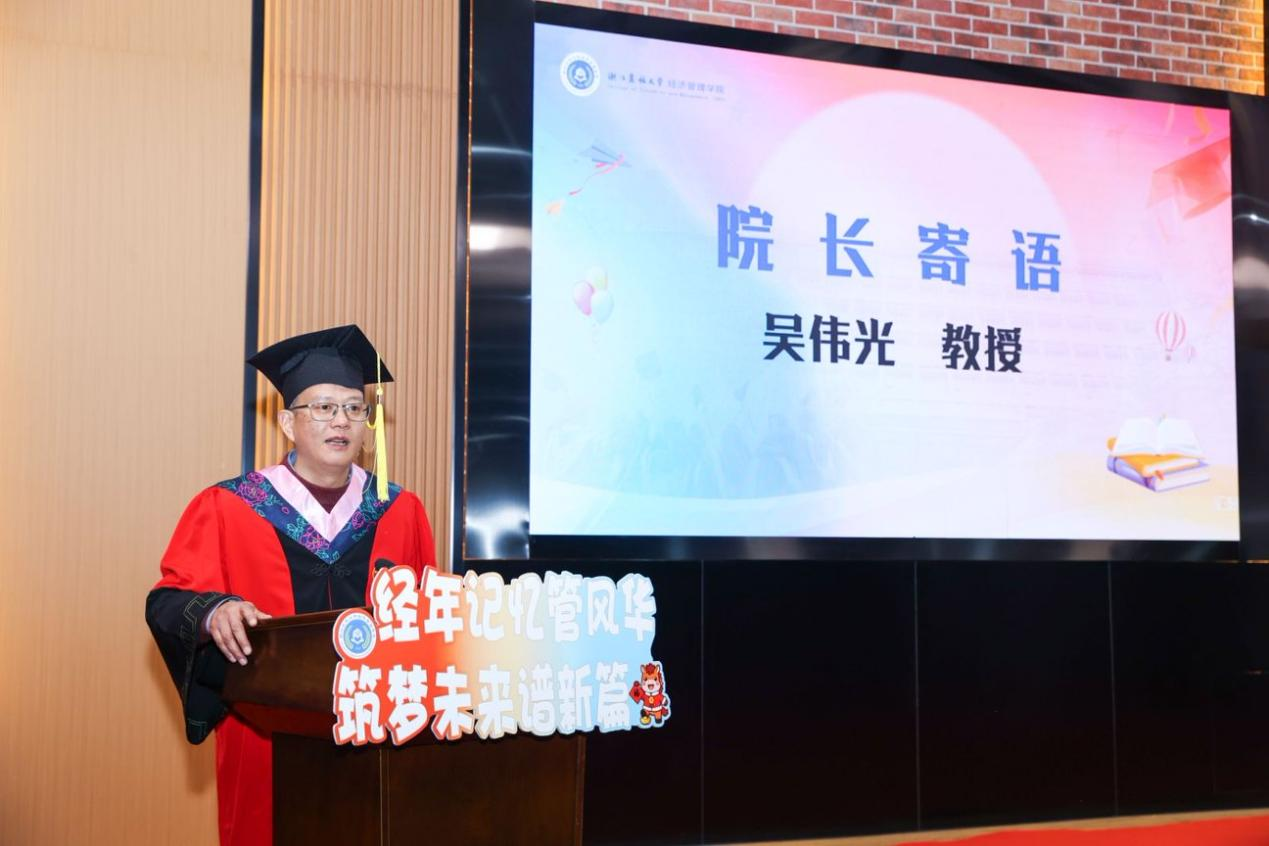 吴伟光院长为毕业生们送上寄语。他表示,beat365官方网站一直是每一位同学坚强的后盾。他把“经年记忆,筑梦未来”这个主题词赠予毕业生们,并提炼三句话与大家共勉:一是,愿毕业生们如“种子”,扎根大地,生生不息;二是,愿毕业生们如“桥梁”,连接智能,引领未来;三是,愿毕业生们如“灯塔”,守正拓新,照亮前程。最后,他祝愿毕业生们在未来的道路上,无论是平坦还是崎岖,无论是顺利还是多艰,愿他们都能“脚踏实地、追求卓越”,勇敢地追逐梦想,积极地拥抱变革!