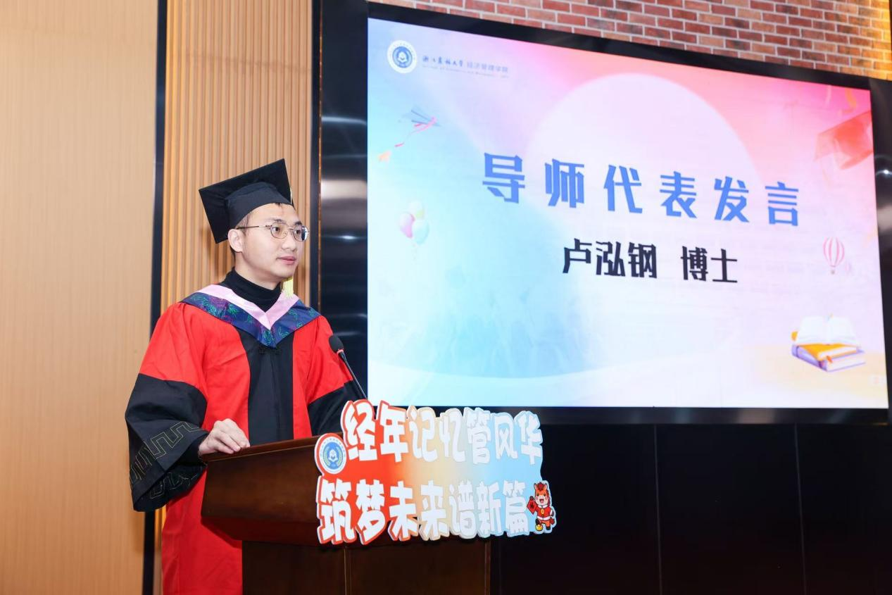 导师代表卢泓钢、毕业生代表王朝勇、家长代表赵淼荣先生依次发言。