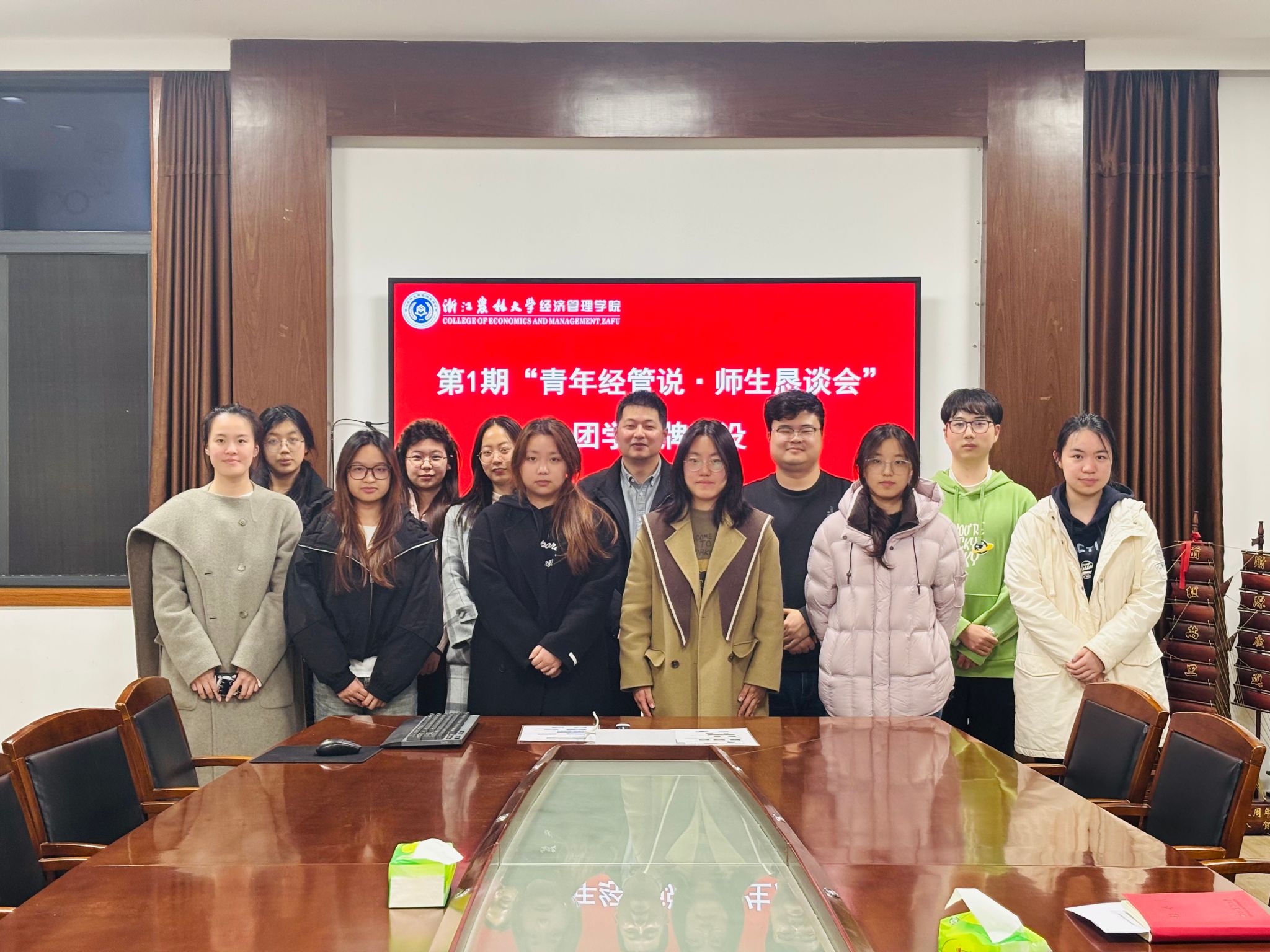 3月23日,beat365官方网站在衣锦校区学院楼208会议室召开第1期“青年经管说・师生恳谈会”,围绕团学工作、品牌建设及学院成立40周年相关学生活动等主题展开交流。学院党委副书记曹磊、团委书记蔡广越、学生会秘书长孙婷出席会议,2023级团学主席团成员参加恳谈会。