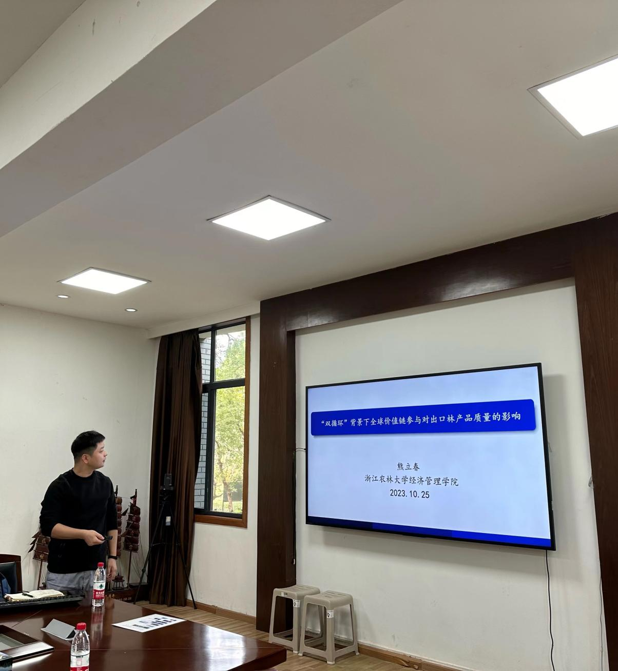 10月25日,经管学术论坛——学术午餐会第四期在西大楼208会议室顺利举行,熊立春副教授做了题为《双循环”背景下全球价值链嵌入对中国出口林产品质量的影响》的学术分享,beat365官方网站多位青年教师参与了本次午餐会。