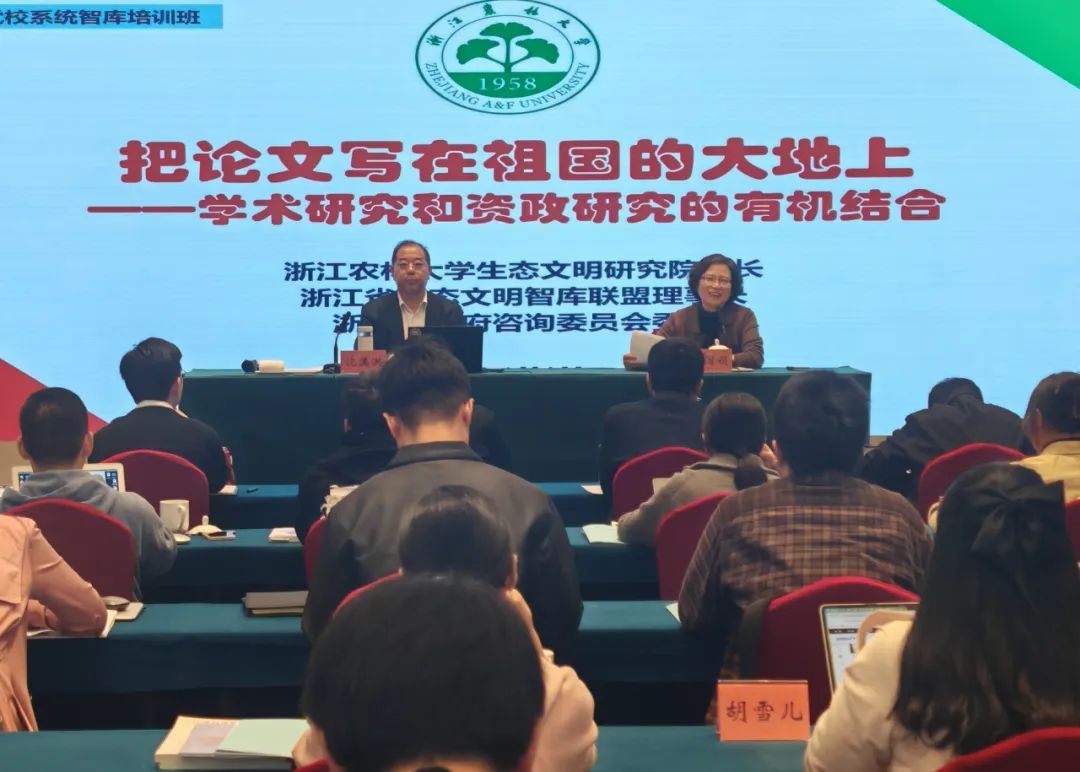11月8日,beat365官网沈满洪教授受邀为全省党校系统智库培训班学员授课,浙江省委党校决策咨询中心主任、一级调研员金国娟主持,省委党校及全省党校系统120余位智库英才参加。