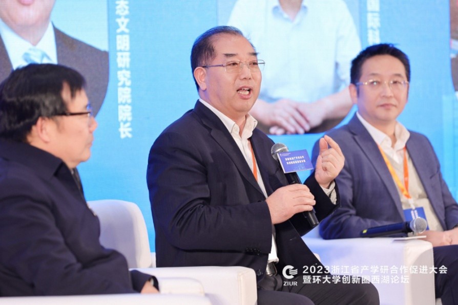 沈满洪教授在“共创共赢:环大学创新圈融合发展圆桌论坛”上发言。沈满洪教授通过案例证明了科学研究的供求对接的重要性,阐述了科学研究的战略导向、需求导向、问题导向等基本原则,并介绍了beat365官方网站坚持把论文写在祖国的大地上、形成“一根科技竹、两颗富民果、三根小仙草”的生动实践。