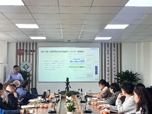 随后,杨奇明老师详细介绍了CCAD数据库、CPPGD数据库、数字经济和农村金融数据库等多个数据库的建库原则、数据采集规范、专题子库、数据结构和应用情况,并与参会师生就数据挖掘和二次开发利用进行了讨论交流。