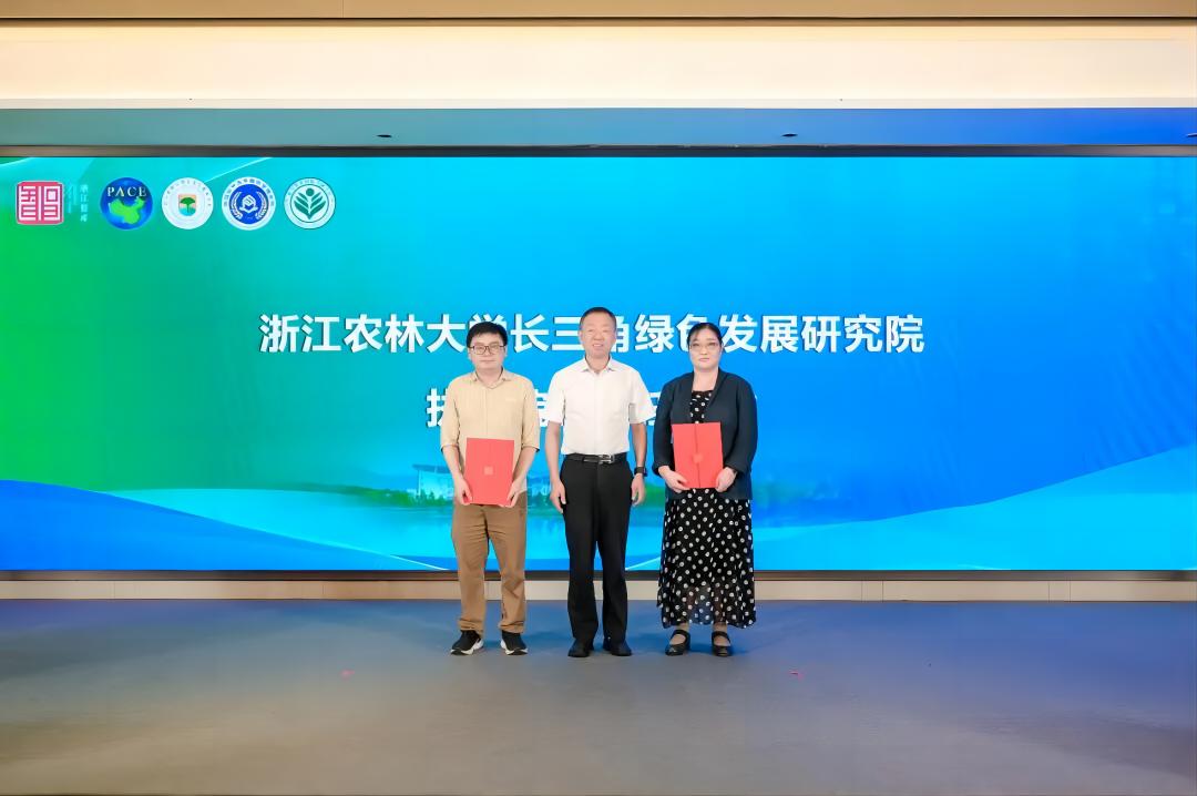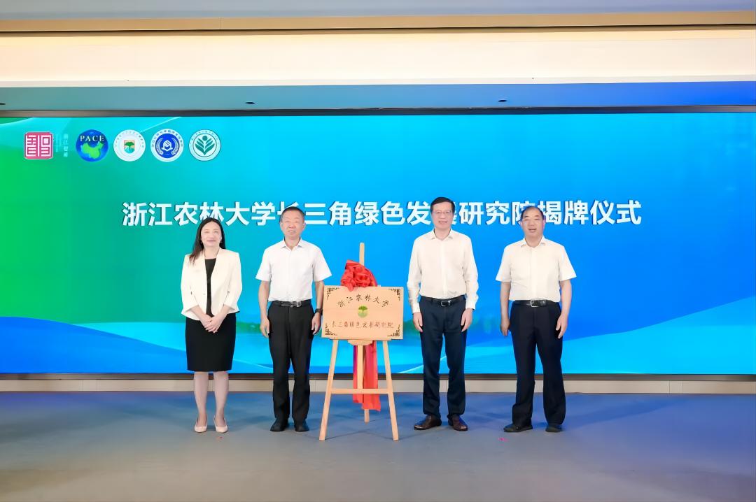 随后举行了长三角绿色发展研究院揭牌仪式。郭华巍、吴家胜、沈满洪、许勤华等领导共同为长三角绿色发展研究院揭牌。长三角绿色发展研究院将立足于长三角绿色发展先行区,承接国家部委和地方政府以及国内外各类社会组织的委托,从事基于浙江理念与产业优势的能源行业新质生产力的深度挖掘、光伏等新能源产业以及能源智能网联技术国际合作与咨询服务及培训等,推动与“一带一路”沿线国家的绿色发展经验交流、产业互通和金融互融。研究院下设绿色产业政策、绿色科技创新、绿色金融发展、绿色产能国际合作等四个研究所。研究院积极拓展与世界各国的学术交流和智库合作,推进中外学者和学生交流。