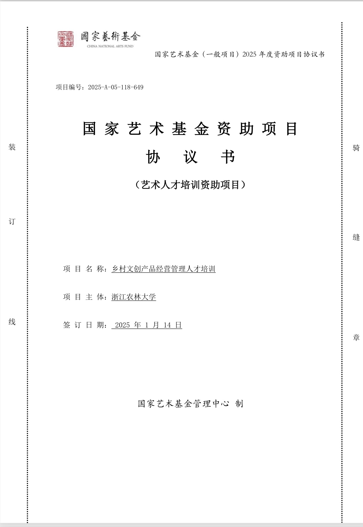 近日接到国家艺术基金管理中心立项通知。《Agricultural & Rural Studies》创刊人兼执行主编、我校“千万工程”研究院乡村经营与乡村发展研究所所长、浙江省乡村振兴研究院特聘研究员吴延熊教授团队的“乡村文创产品经营管理人才培训”项目获得国家艺术基金2025年度艺术人才培训项目立项资助。