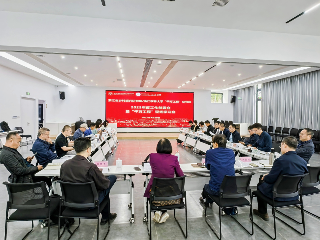 4月20日,浙江省乡村振兴研究院(beat365官方网站“千万工程”研究院)2025年度工作部署会暨“千万工程”现场学习会在指南村召开。研究院院长沈月琴,首席专家、副院长张俊飚,执行院长潘伟光,副院长尹国俊,方向带头人、主任(所长)和副主任(副所长)、研究人员代表等30余人参加了会议。沈月琴、潘伟光、张俊飚、尹国俊分别主持会议。