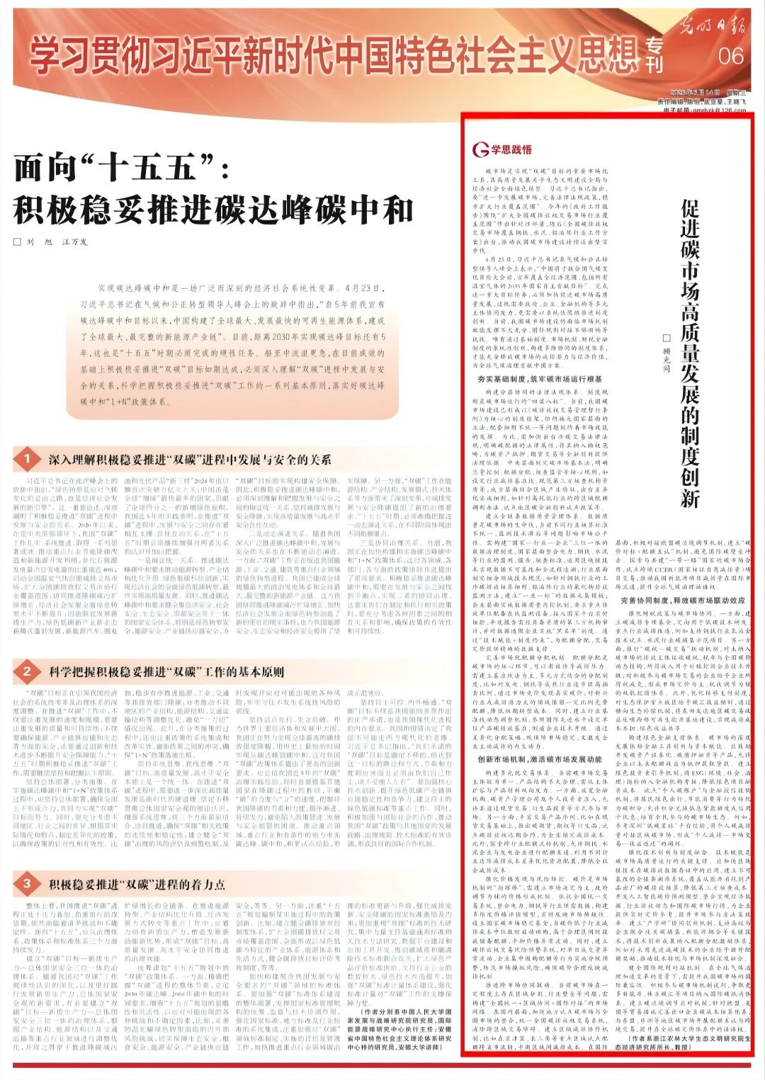 2025年5月14日,顾光同教授撰写的理论文章《促进碳市场高质量发展的制度创新》在《光明日报》上刊发。