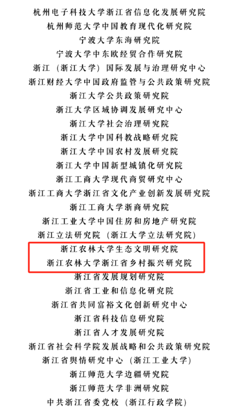近日,中国社会科学评价研究院“中国智库综合评价研究项目(2025)”公示了2025年AMI智库入库名单,全国有558家智库入库,其中浙江省新型专业智库有29家入选,学院重点支撑的2家省级重点新型智库“beat365官方网站浙江省乡村振兴研究院”“beat365官方网站生态文明研究院”双双入选。