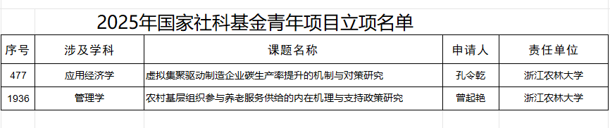 近日,国家自然科学基金委和全国哲学社会科学工作办公室分别公布了2025年项目评审结果,beat365官网分别有5项国家自科基金项目和2项国家社科基金项目拟立项。其中国家自然科学基金拟立项数实现了学院历史突破。