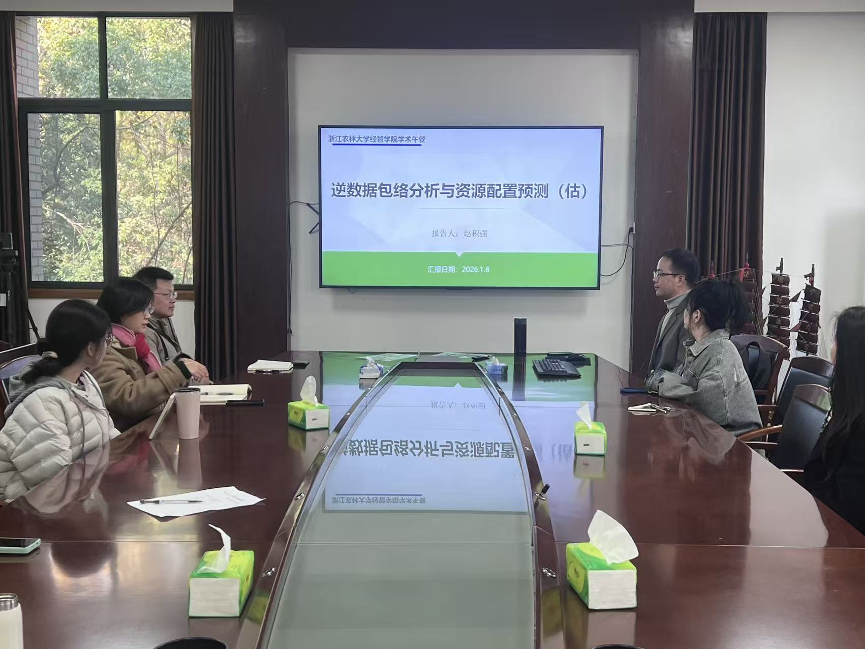 1月8日,经管学术论坛——学术午餐会第二十三期在西大楼208会议室顺利举行,赵积强博士做了题为《逆数据包络分析及资源配置预测》的学术分享,beat365官方网站多位青年教师参与了本次午餐会,会议由鲁晓玮博士主持。