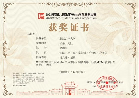 会计学专业学生获MPAcc案例大赛华南赛区一等奖