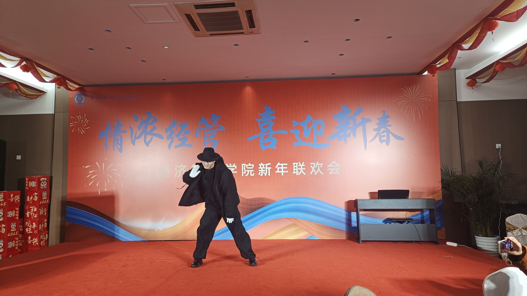 随着夜幕降临,联欢会正式拉开序幕,晚会内容丰富多彩,不仅有才艺展示,还有互动游戏和幸运抽奖等环节,让每一位参与者都能感受到家的温暖和集体的力量。首先登场的是新入职教师代表带来的祝福环节。他们用真挚的话语表达了对未来工作生活的美好憧憬以及对学院大家庭的感恩之情。