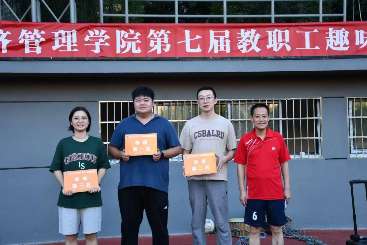 经过激烈角逐,“院办+学生办+实验室” 代表队凭借默契配合勇夺团体冠军,“农经+乡村振兴研究院” 代表队紧随其后获得亚军,“应用经济+生态文明研究院” 代表队斩获季军。学院领导为获奖队伍颁奖,勉励全体教职工将赛场上的团结精神延伸到工作中。