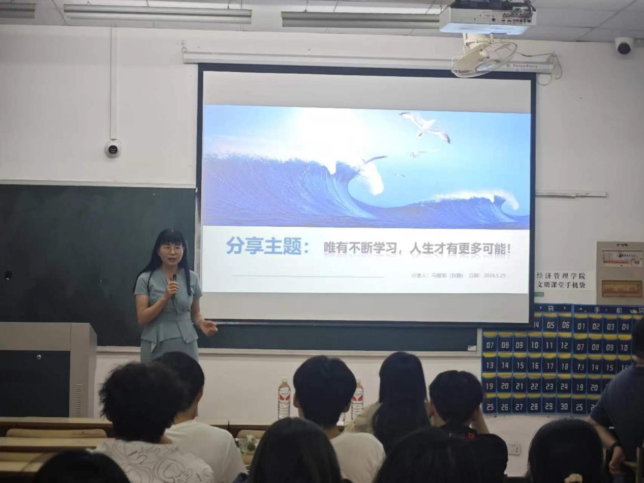 为加强学生干部思想引领,强化生涯规划意识,助力学生成长,5月29日,beat365官方网站邀请万马集团特聘讲师、万马联合控股集团医疗耗材事业部总经理林静女士,为beat365官网学生干部做《以“唯有不断学习,人生才有更多可能!”》主题讲座。