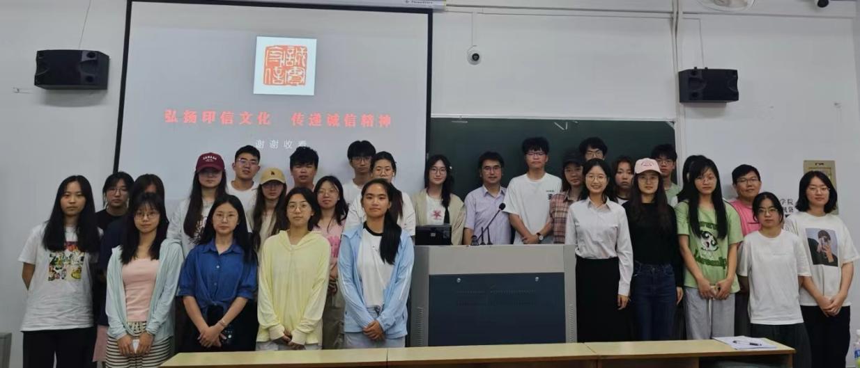 俞以撒以印中见信为切入点,介绍了印的历史与发展,用一些脍炙人口的典故为例,分享诚信知识内容,阐释了诚信的真谛,帮助学生增长诚信知识;此外,俞老师还结合自身的工作经历,以亲身经历强调了诚信的重要性,引导大家立下诚信宣言,弘扬诚信正能量。