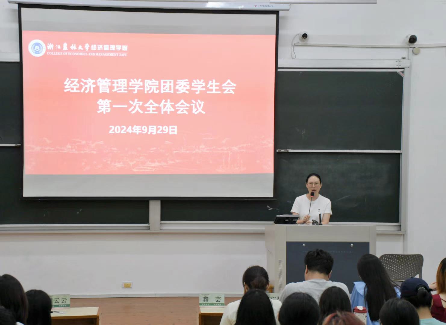 会上,学院党委副书记胡云云向加入经管团学大家庭的新同学们表示热烈欢迎。她以“学姐”身份对同学们提出三点期许:一是要梦想启航,扬帆破浪,科学规划个人发展路径,实现学业进步与综合素质提升的良性互动;二是要点亮星火,照亮彼此,充分发挥主观能动性,促进文化与思想的多元碰撞与融合,激发团学创新活力,为团学事业的发展添砖加瓦;三是要勇敢逐梦,不负韶华,在学习、生活和工作的过程中完成自我提升,在服务他人的过程中实现不断成长。最后,她强调经管团学是学院工作的重要抓手,学院会一如既往支持团学工作,携手并进,共同谱写团学新篇章!