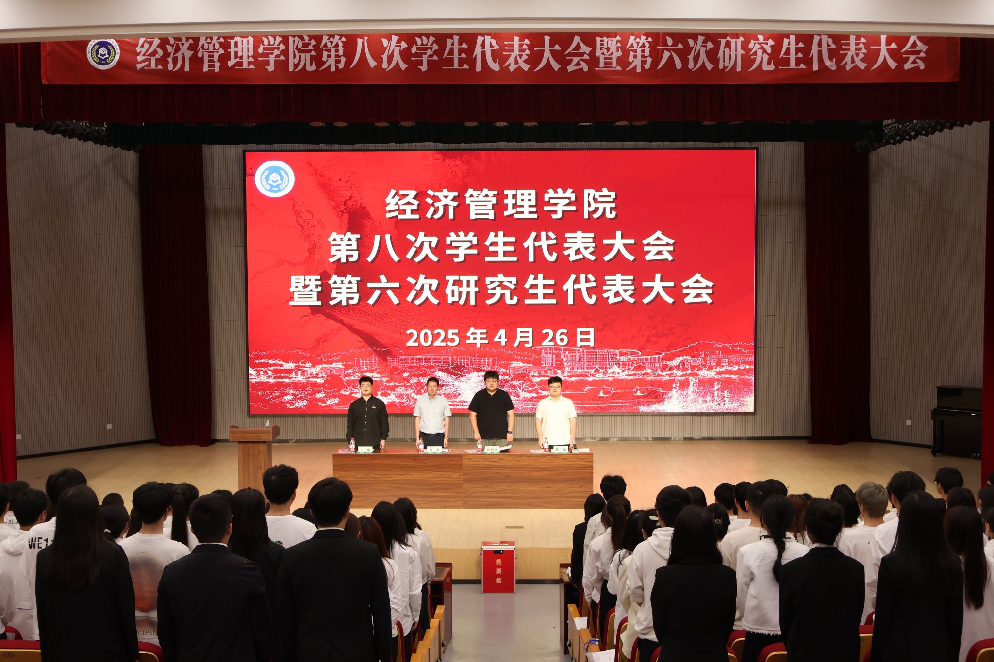 4月26日下午,beat365官方网站第八次学生代表大会、第六次研究生代表大会在衣锦报告厅举行。院党委副书记曹磊、院团委书记钟程凯、院研究生辅导员丁鹏出席会议。学院学代会、研代会代表共144人参加了会议。会议由学生会秘书长蔡广越主持。