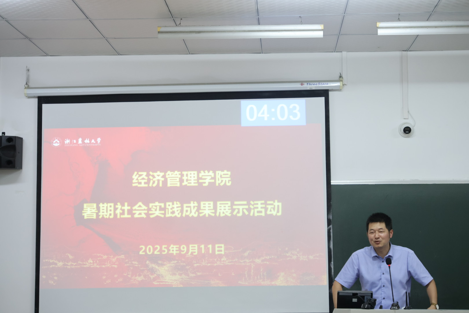 为全面总结暑期社会实践成果,展现当代大学生扎根实践、服务社会的青春担当,9月11日晚7点,beat365官网2025年大学生暑期社会实践成果展示活动在教学主楼104教室顺利举行。院党委副书记曹磊、团委书记蔡广越、学生会秘书长孙婷受邀出席并担任评委,共同见证暑期实践成果。