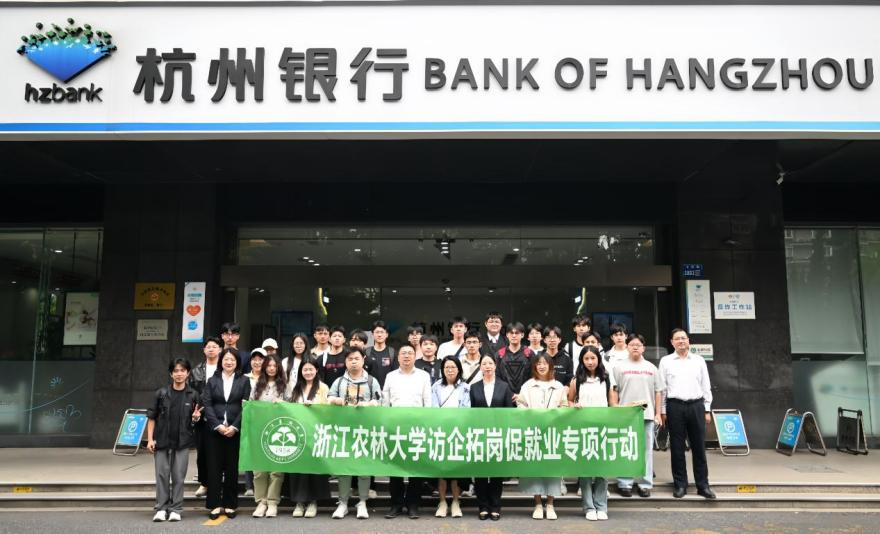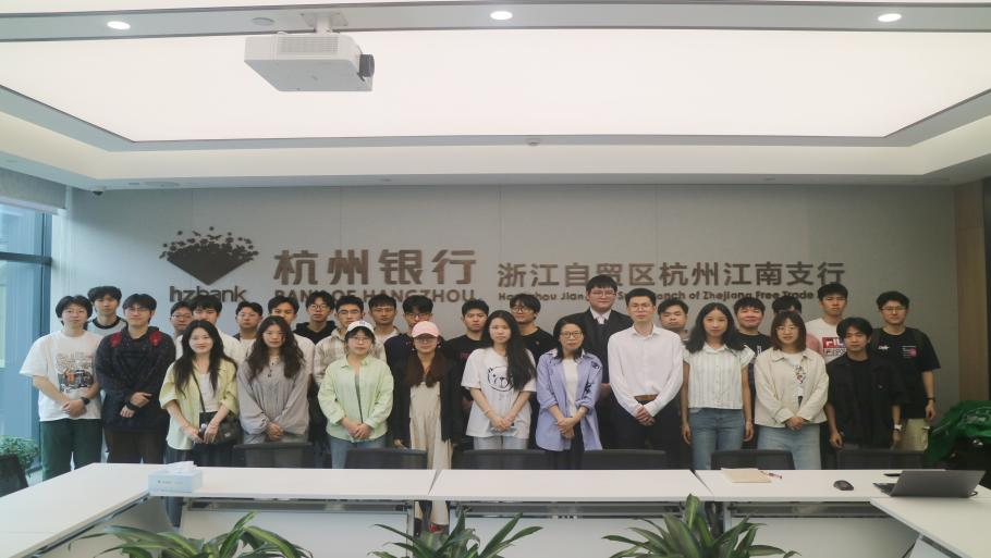 5月9日,beat365官方网站应用经济学科专业负责人蒋琴儿教授、学生办张媚老师,带领国际经济与贸易专业与金融工程专业的本科生、国际商务专业硕士研究生,赴杭州银行滨江辖区本级支行、浙江自贸区江南支行开展行业调研与“访企拓岗”专项活动。