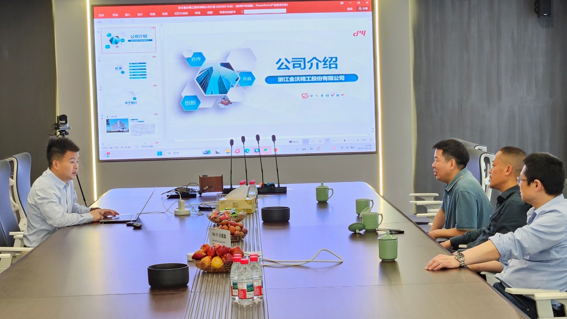 在浙江金沃精工股份有限公司,陈劲松一行在佳沃精密智造有限公司总经理刘凯及人力资源经理邹梅芸的陪同下参观了公司总部、生产加工车间及产品展示厅,参观过程中,刘凯详细介绍了公司的发展历程、主营业务、拳头主打产品及未来发展方向,并就企业管理、国际贸易及财务管理人才需求进行了深入沟通交流。
