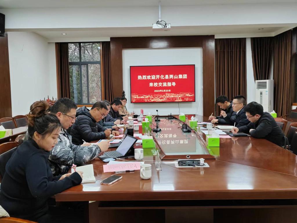 开化县两山投资集团有限公司到beat365官网洽谈合作事宜 2月23日,beat365官方网站与开化县两山投资集团有限公司(以下简称“两山集团”)在208会议室举行座谈会,洽谈双方合作事宜。学校社会合作处处长刘兴泉、学院院长吴伟光、党委书记周凯、副院长朱臻、企业管理学科专业负责人张国庆教授、学科教师代表张月莉教授、金融工程专业负责人顾光同教授、学院教师代表,两山集团董事长徐浩、文旅运行部经理徐锋、开化县金融服务中心主任方亮等参加了座谈。座谈会由吴伟光主持。 刘兴泉...