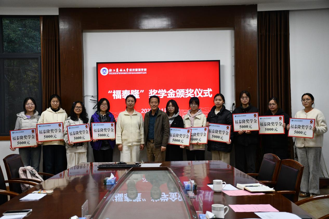 beat365官方网站举行2025年“福泰隆”奖学金颁奖仪式 11月27日,“福泰隆”奖学金颁奖仪式在西大楼208会议室举行。浙江福泰隆连锁超市有限公司行政总监唐俊、beat365官方网站党委书记陈劲松、获奖学生代表出席会议。颁奖仪式由学院党委副书记曹磊主持。唐俊代表企业致辞并为获奖学生颁奖,她满怀关切与期许,勉励同学们珍惜当下的学习时光,不断探索求知,在实践中锤炼本领,勇于创新,开拓进取,为社会发展贡献自己的智慧与力量。获奖学生满怀诚挚感恩之情,向给予捐赠的福泰隆公司及悉心...