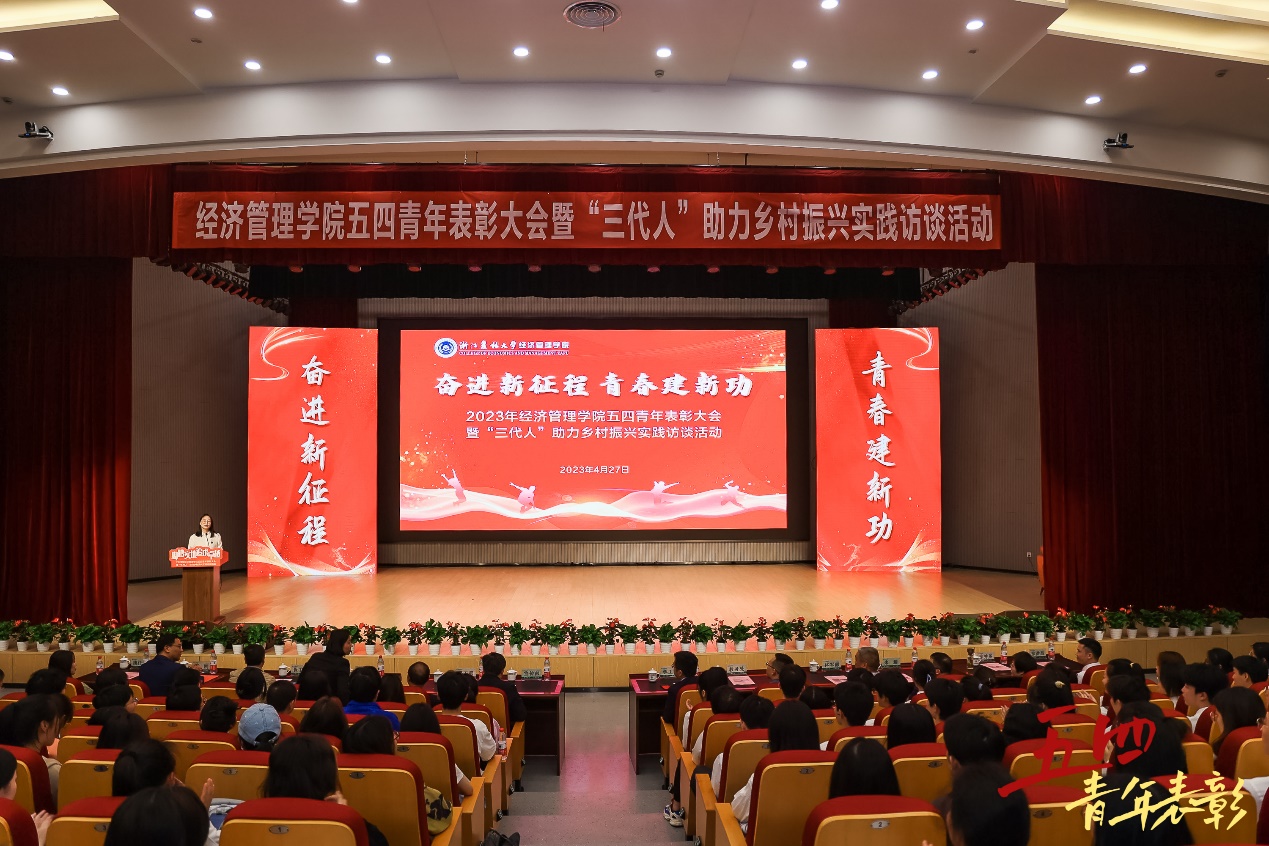 beat365官方网站五四青年表彰大会暨“三代人”助力乡村振兴实践访谈活动顺利举行 2023年是全面贯彻落实党的二十大精神的开局之年。4月27日下午,beat365官方网站以学习贯彻习近平新时代中国特色社会主义思想主题教育为契机,在衣锦报告厅举行beat365官方网站beat365官方网站五四青年表彰大会暨“三代人”助力乡村振兴实践访谈活动,集中展现经管师生昂扬向上、奋发有为的精神风貌,为奋进新征程凝心聚力。校宣传部、学工部、研工部、教务处、保卫处、体军部、团委等职能部门出席会议,并为优秀师生颁奖。整场活动在《书写青...